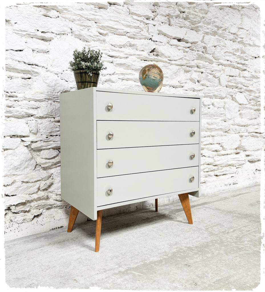 Commode Vintage Pieds Compas Revisitée Gris Vert Clair