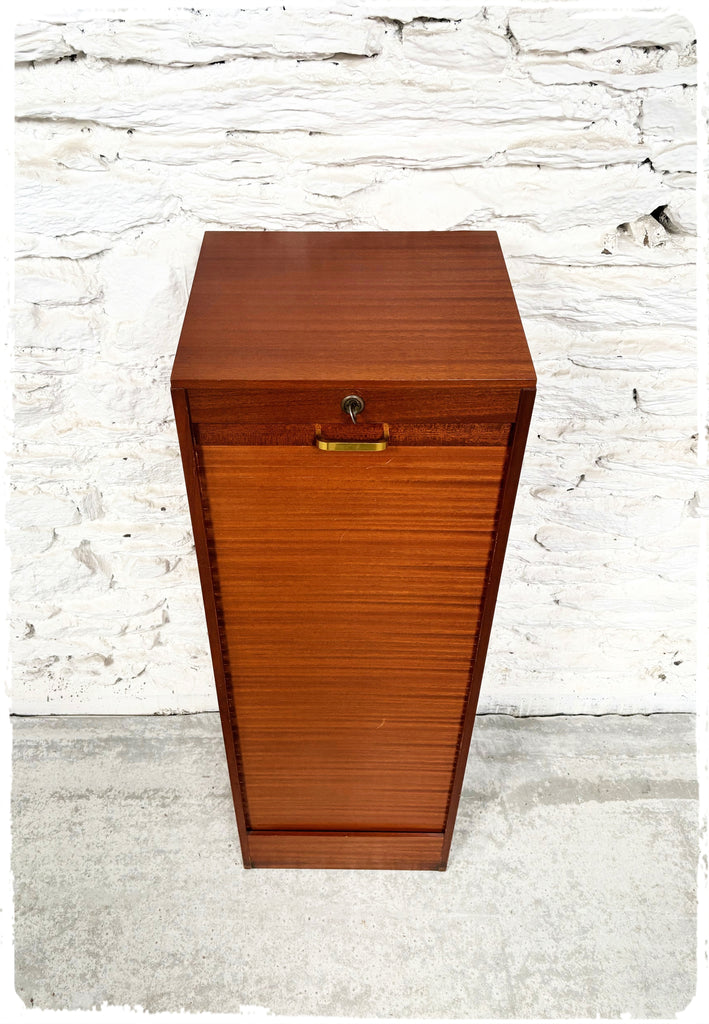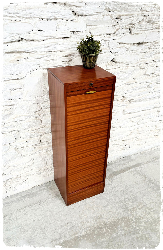 Classeur à rideau des années 60, 70 en bois exotique (placage)